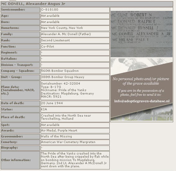 additional information www.388bg website Robert Joe Rupe Dutch Gravesite information adoptiegraven-database.nl |